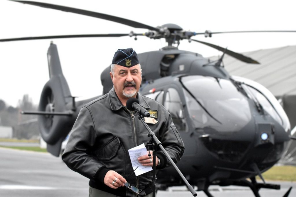 Kilián Nándor az újonnan érkezett Airbus H-145 helikopterek mellett tartott beszéde közben.