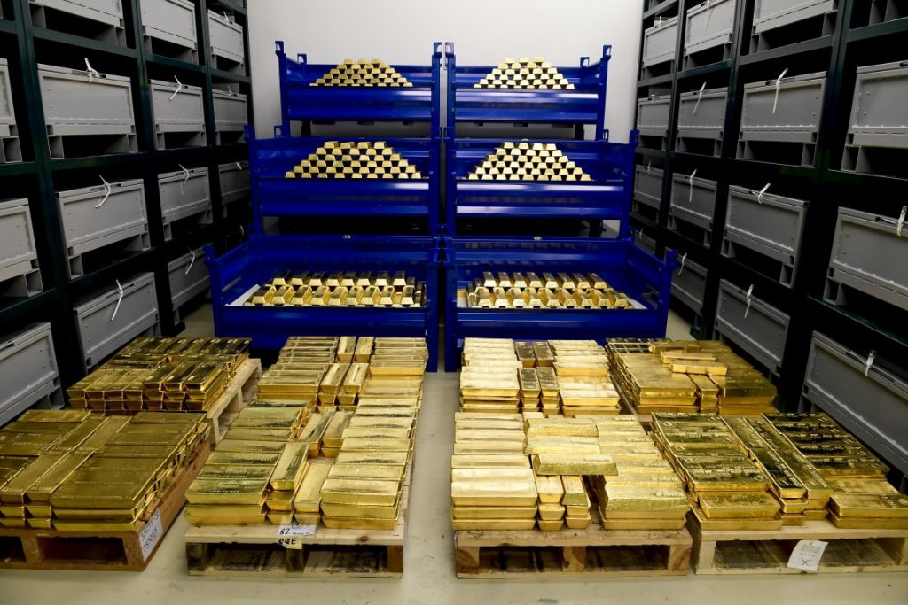 Aranytömbök az MNB által őrzött aranytartalékból Budapesten, az MNB logisztika központjában 2021. július 6-án. Ezen a napon Orbán Viktor miniszterelnök Matolcsy György, a Magyar Nemzeti Bank (MNB) elnökének társaságában megtekintette az MNB által őrzött aranytartalékot. A jegybank 2018-ban a miniszterelnök stratégiai tanácsára úgy döntött, hogy megtízszerezi Magyarország aranytartalékát, majd az elmúlt évben újabb bővítésről döntöttek, így jelenleg 94,5 tonna az aranytartalék.